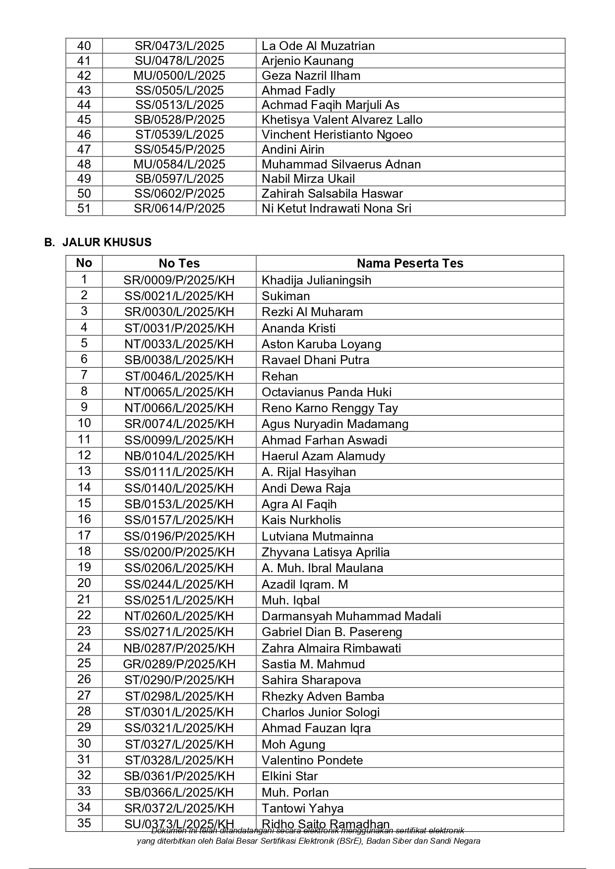 berikut nama-nama calon peserta didik baru dan cadangan. Keputusan panitia ini bersifat mutlak dan tidak dapat diganggu gugat.